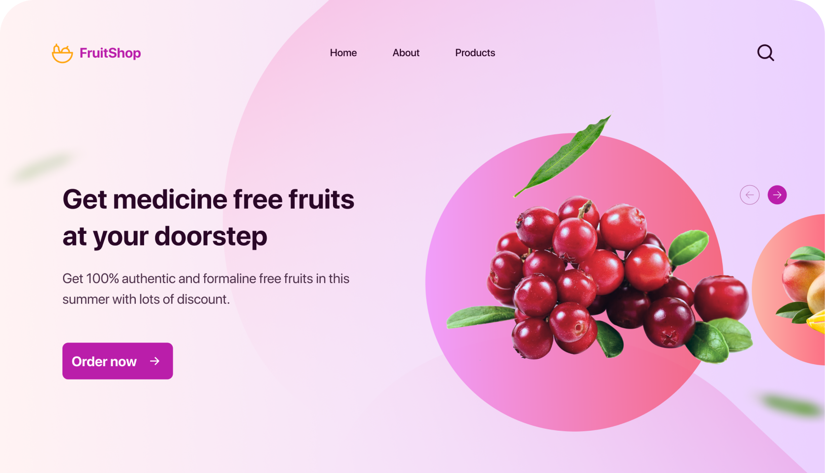 Layout implementado a partir de um design no figma criado por @tanvirux https://sbnc.github.io/webDesignModelFruitShop/